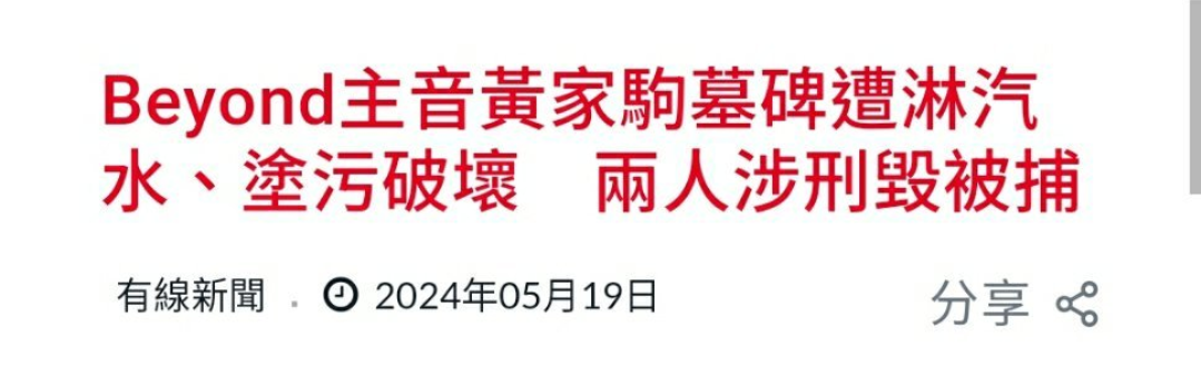 热搜!港星黄家驹墓碑被锤,两位涉事少年被捕,多位明星发声
