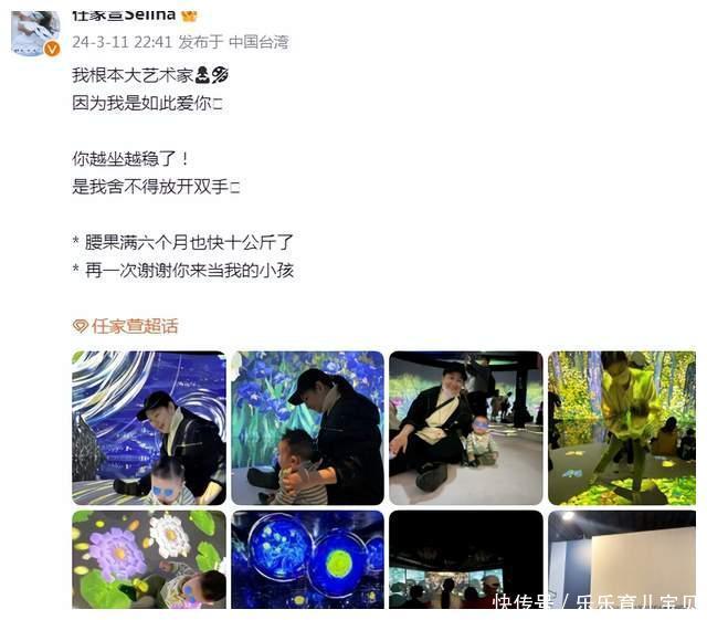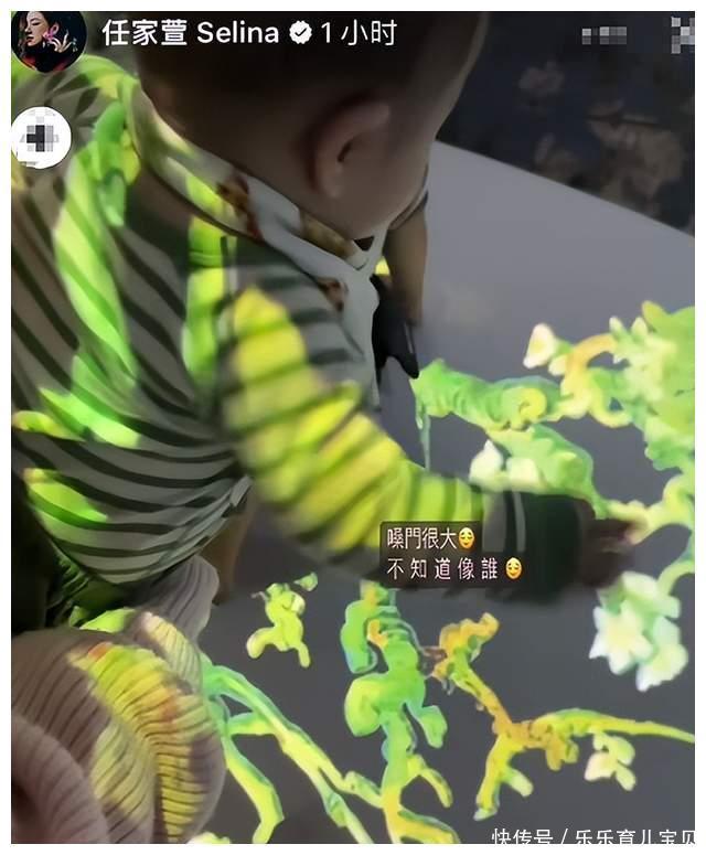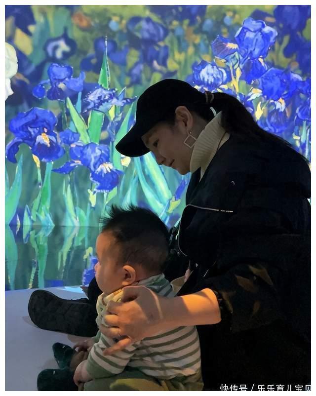 Selina一家五口看展,儿子皮肤白净体型壮实,和妈妈儿时一模一样