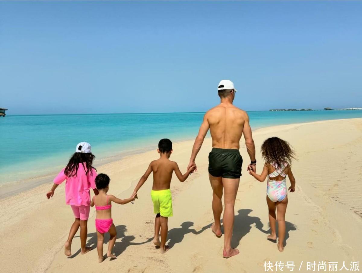 C罗晒海滩度假照!只穿泳裤秀出浑身腱子肉,老婆一身红色比基尼