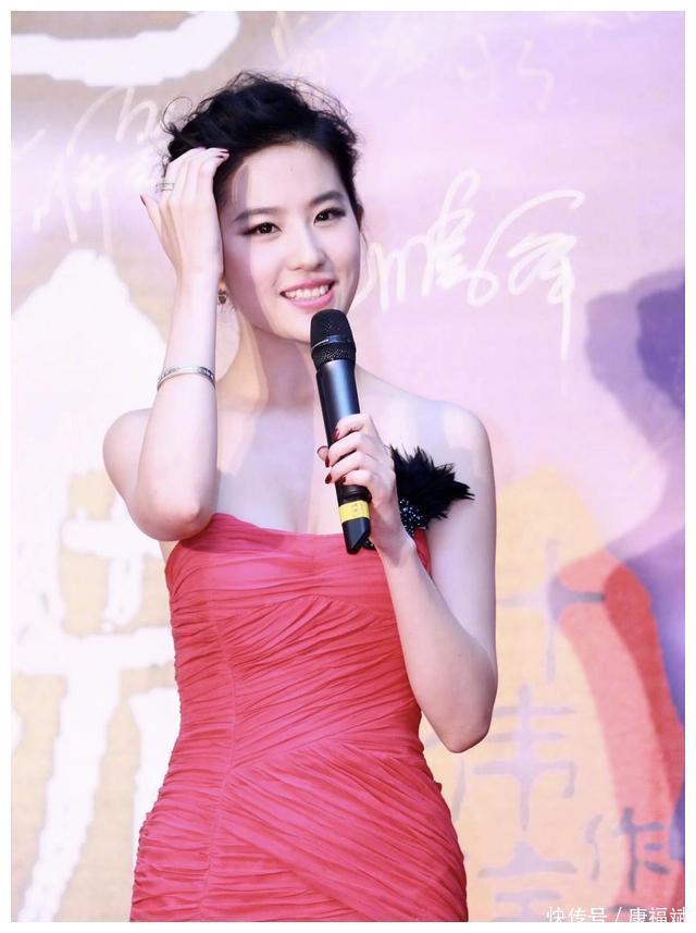 刘亦菲真懂打扮,用桃红色的礼裙搭配羽毛胸针,却意外显得很优雅