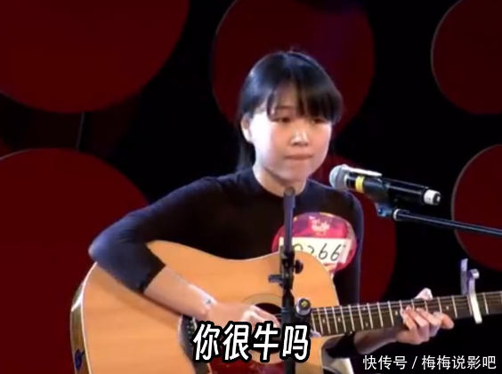 还有最经典的吉他女孩,这位选手进场为了方便弹吉他便找来一个凳子坐下,整理好后有点小紧张就出现了一点小失误。
