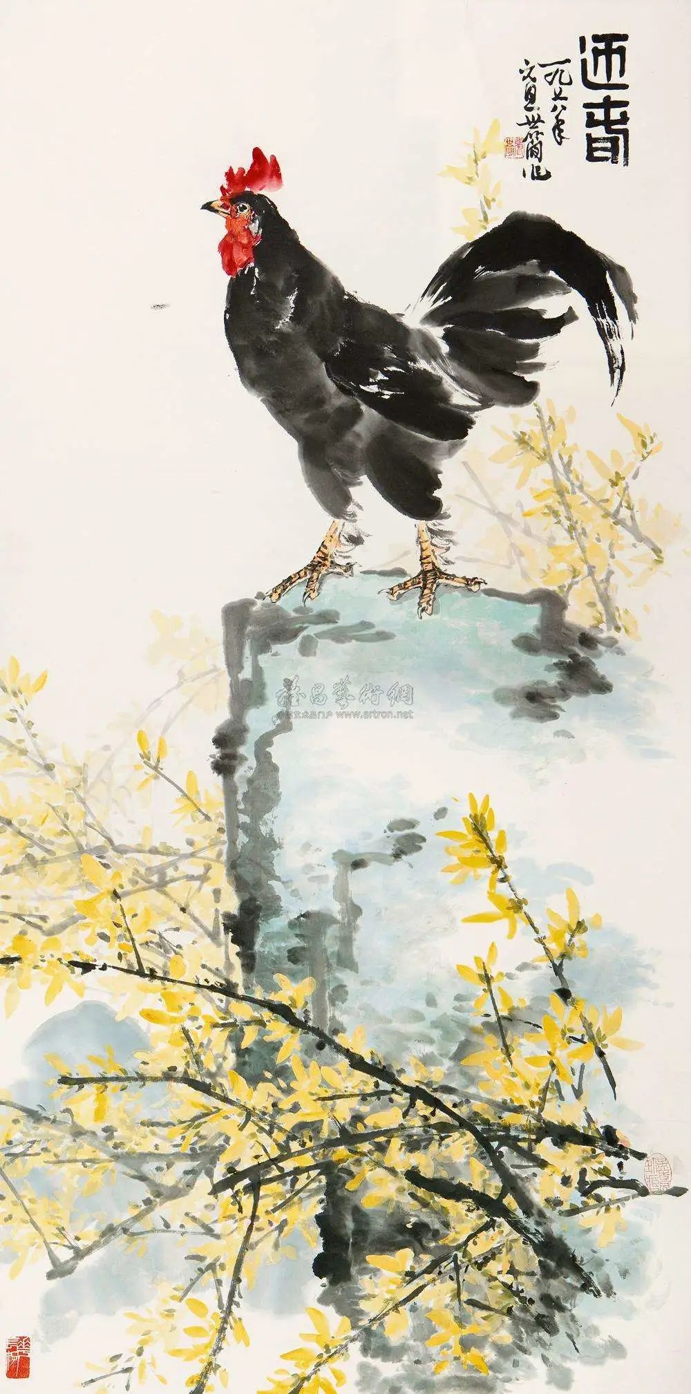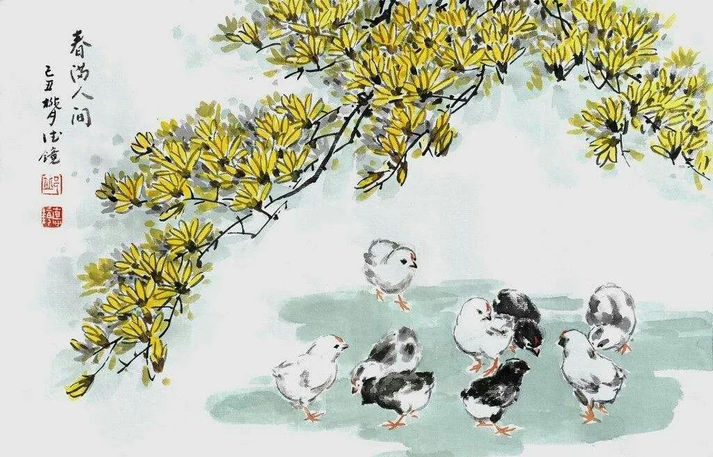 现代工笔花鸟画家,他的工笔重彩花鸟画已完成了传统型到现代型的转变。在他笔下,状物传神的要求已经不是难事了,而是更高境界的抒情,通过花鸟画来抒发时代之情,人民之情。