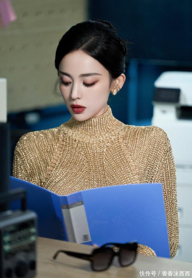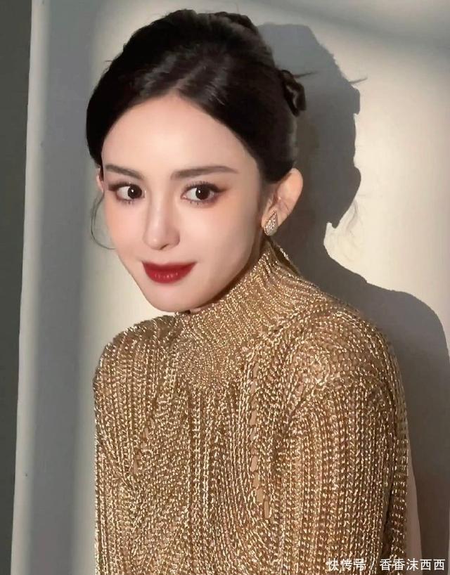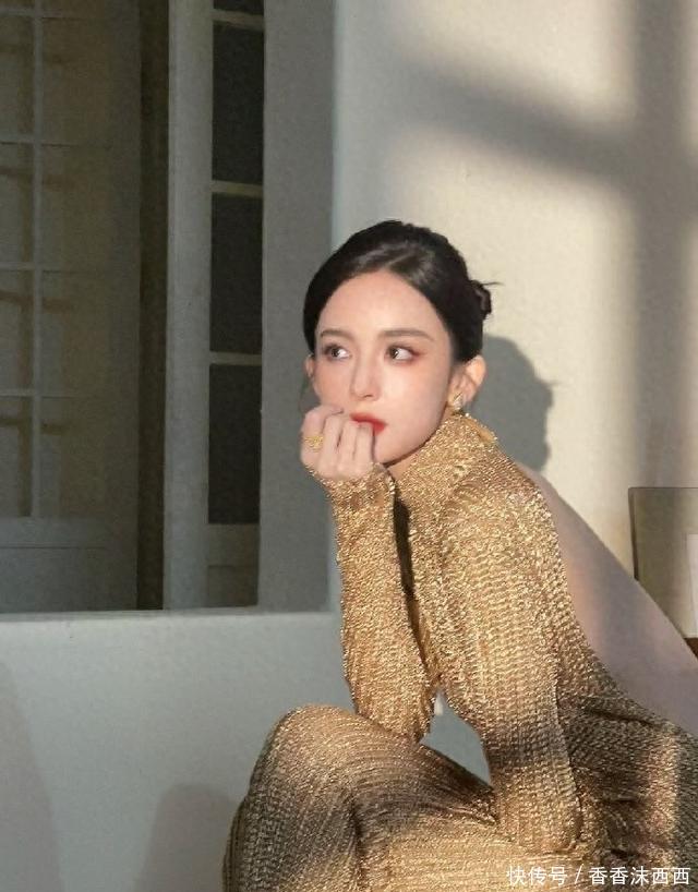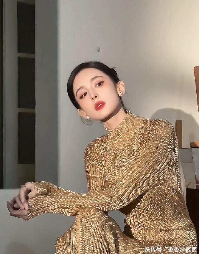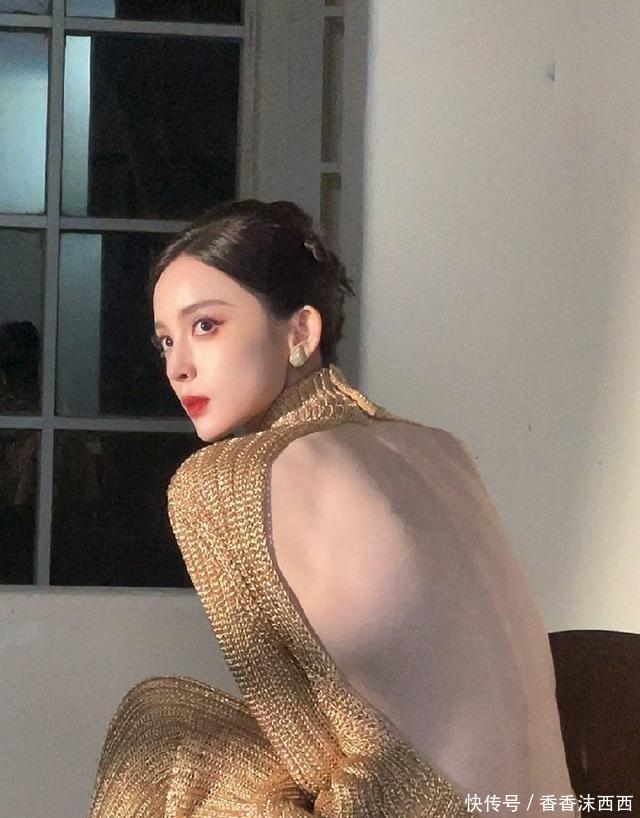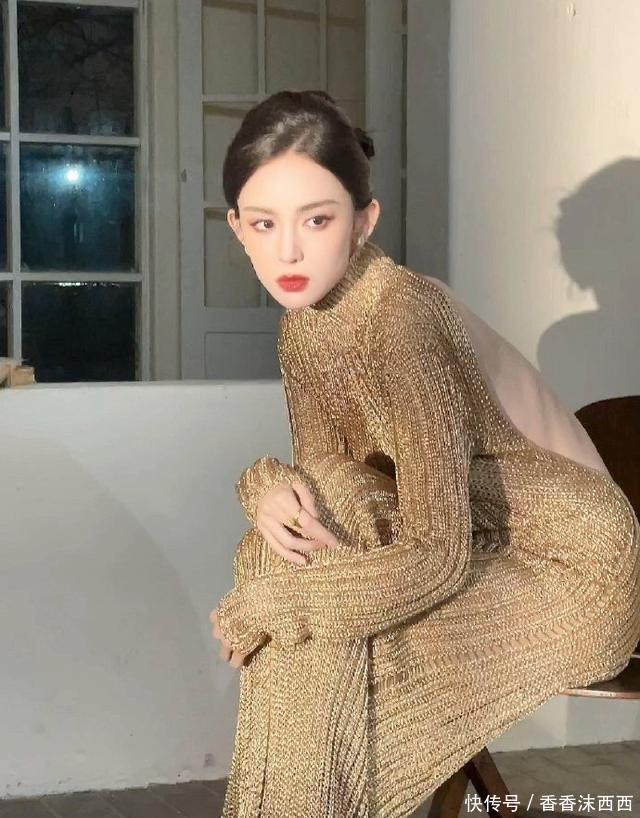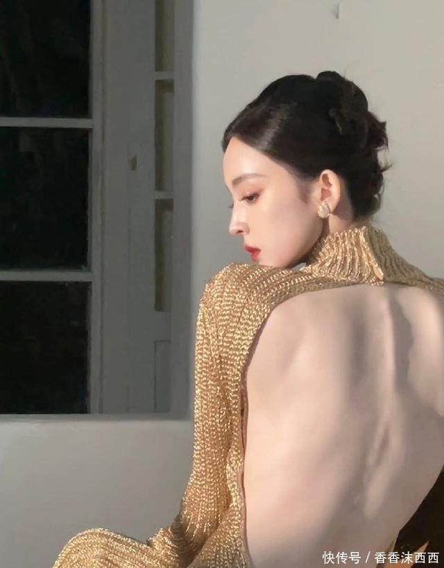 娜扎这身材完完全全的就是衣架子,金色大露背裙针织裙,流光溢彩