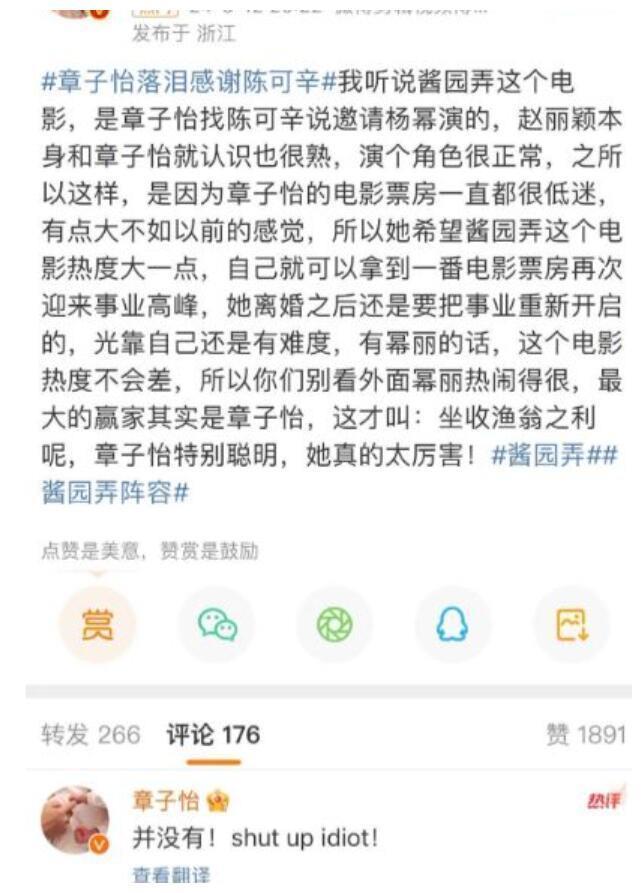 利用杨幂、赵丽颖蹭热度?章子怡“被说是最大赢家”罕动怒回呛网友