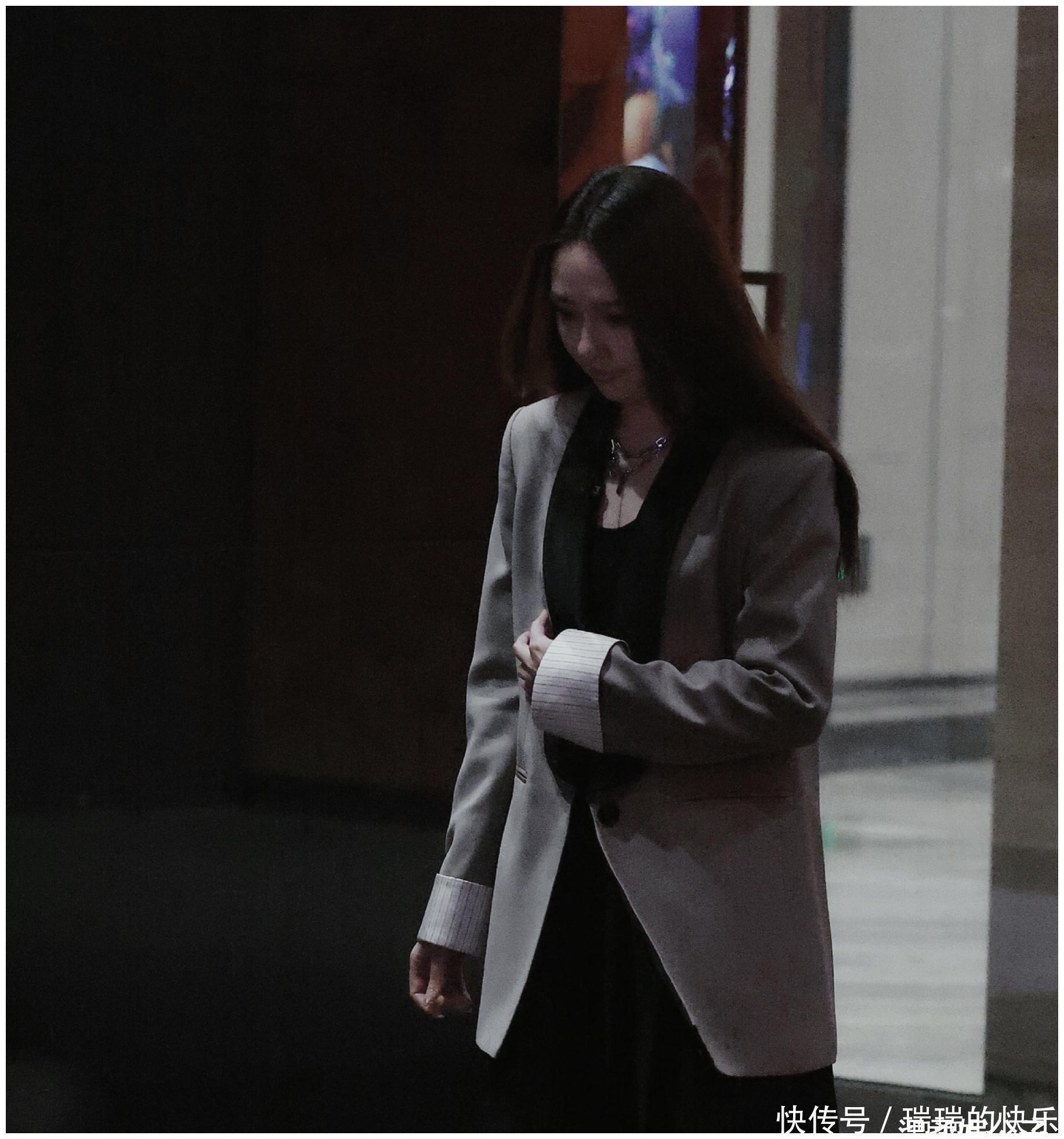 穿黑色西装加高开叉长裙,迎面走来,大方微笑招呼,漂亮知性,虽然她这几年网络风评一般般,但不得不承认业内能力还行,属于演员里唱歌不错的。